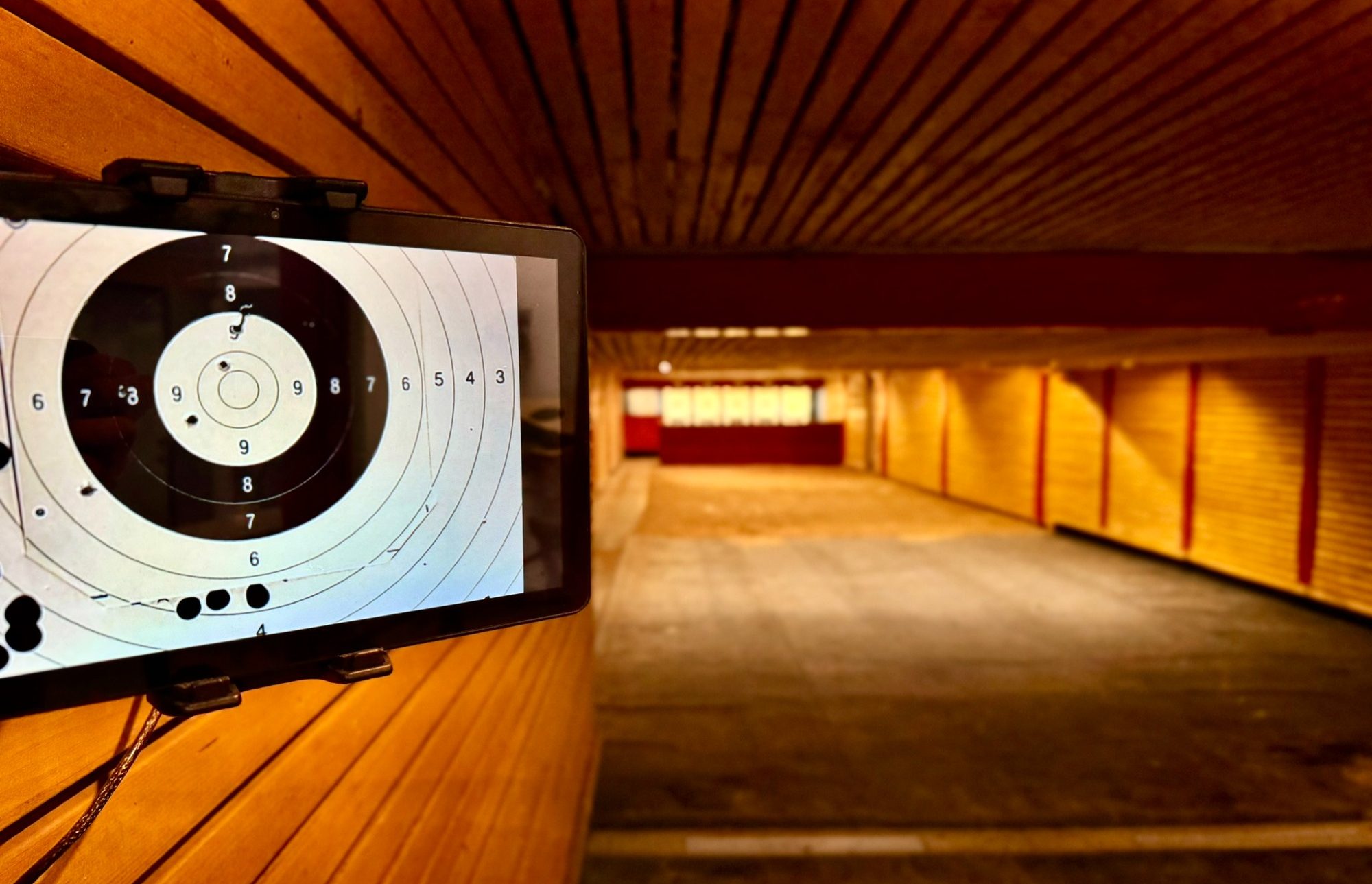 Wir besitzen einen 25m Kurzwaffenstand, deine Zielscheibe siehst du auf einem Bildschirm direkt vor dir.